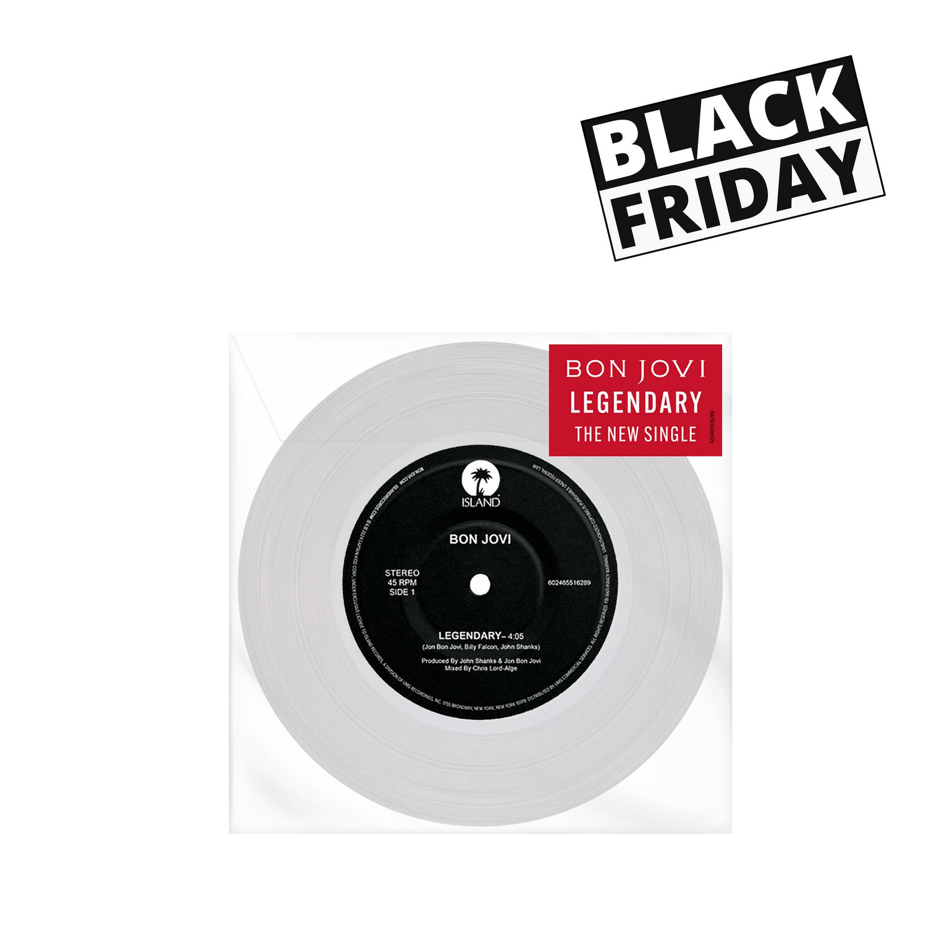 Bon Jovi Legendary CLEAR 7” VINILO SINGLE (LIMITED EDITION)
